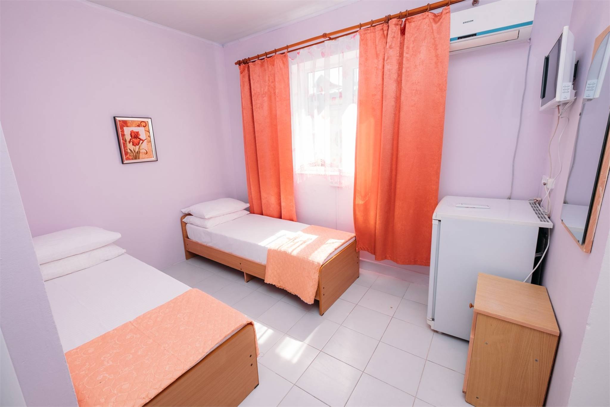 Гостеприимные хозяева "Эдироз На Крымской" предлагают широкий выбор номеров, отвечающих любым потребностям и бюджету. От экономичных вариантов с необходимым набором мебели и удобствами на этаже, до номеров повышенной комфортности, оборудованных собственным санузлом, холодильником, телевизором и кондиционером. Особого внимания заслуживают номера с балконами, утопающими в зелени, где можно насладиться утренним кофе или вечерним бризом.
